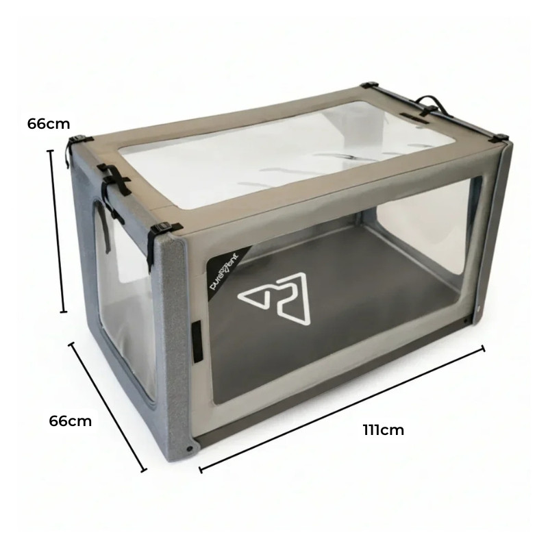 Si tu perro o gato necesita oxígeno de forma regular, la cámara PureVent talla L ayuda a crear un entorno seguro, bien ventilado y con alta concentración de oxígeno.