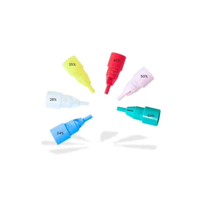 - 6 adaptadores Venturi: azul (24%), blanco (28%), amarillo (35%), rojo (40%), rosa (50%), verde (60%)