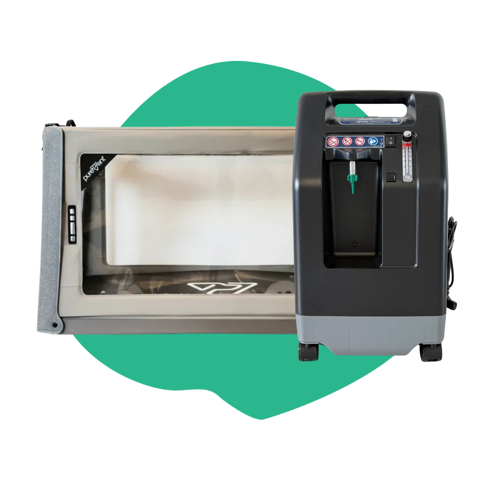 Diseñado para el uso diario en el hogar o en consulta veterinaria, este kit permite suministrar oxígeno constante gracias al concentrador de 10 L/min.